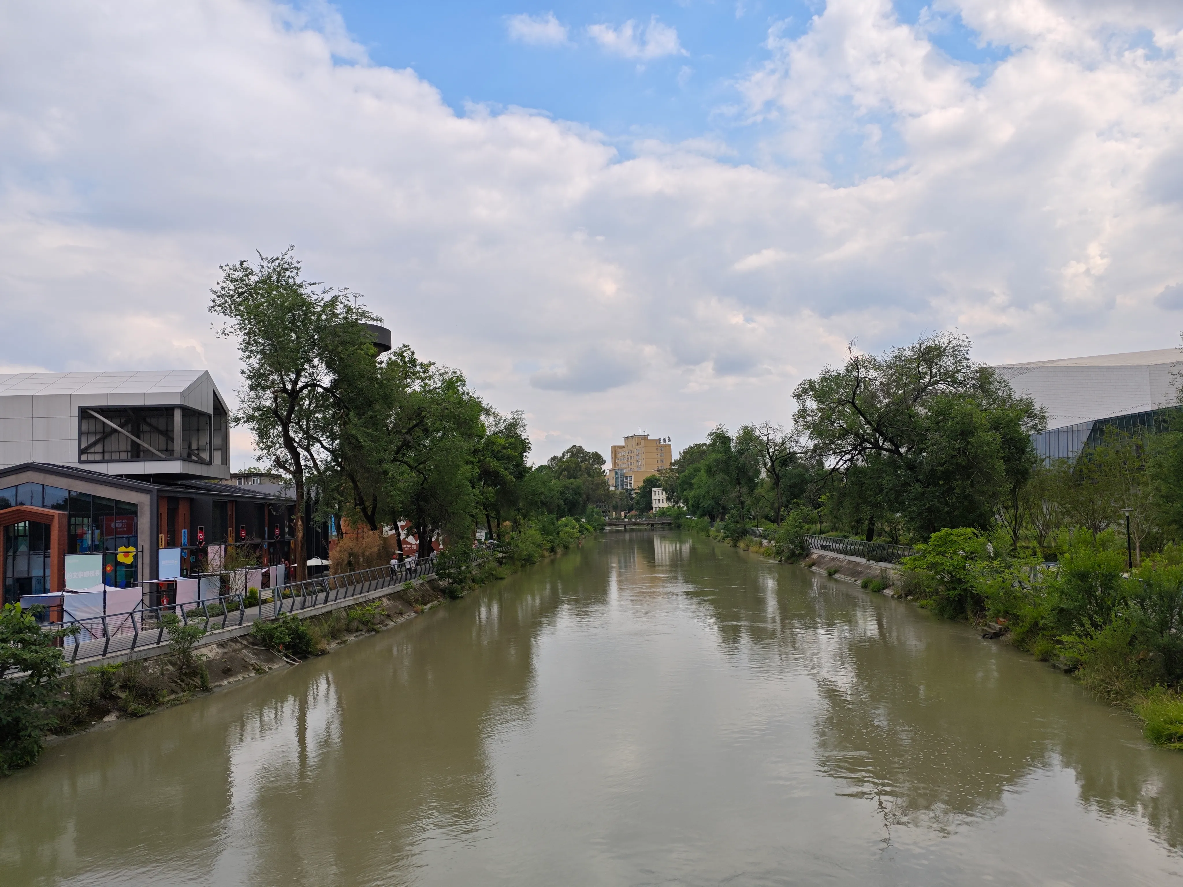 从进水口向下游看,这一带在绕城以内,但北门的城市发展和南门差别巨大,这里基本本还没有大规模的住宅和商业。