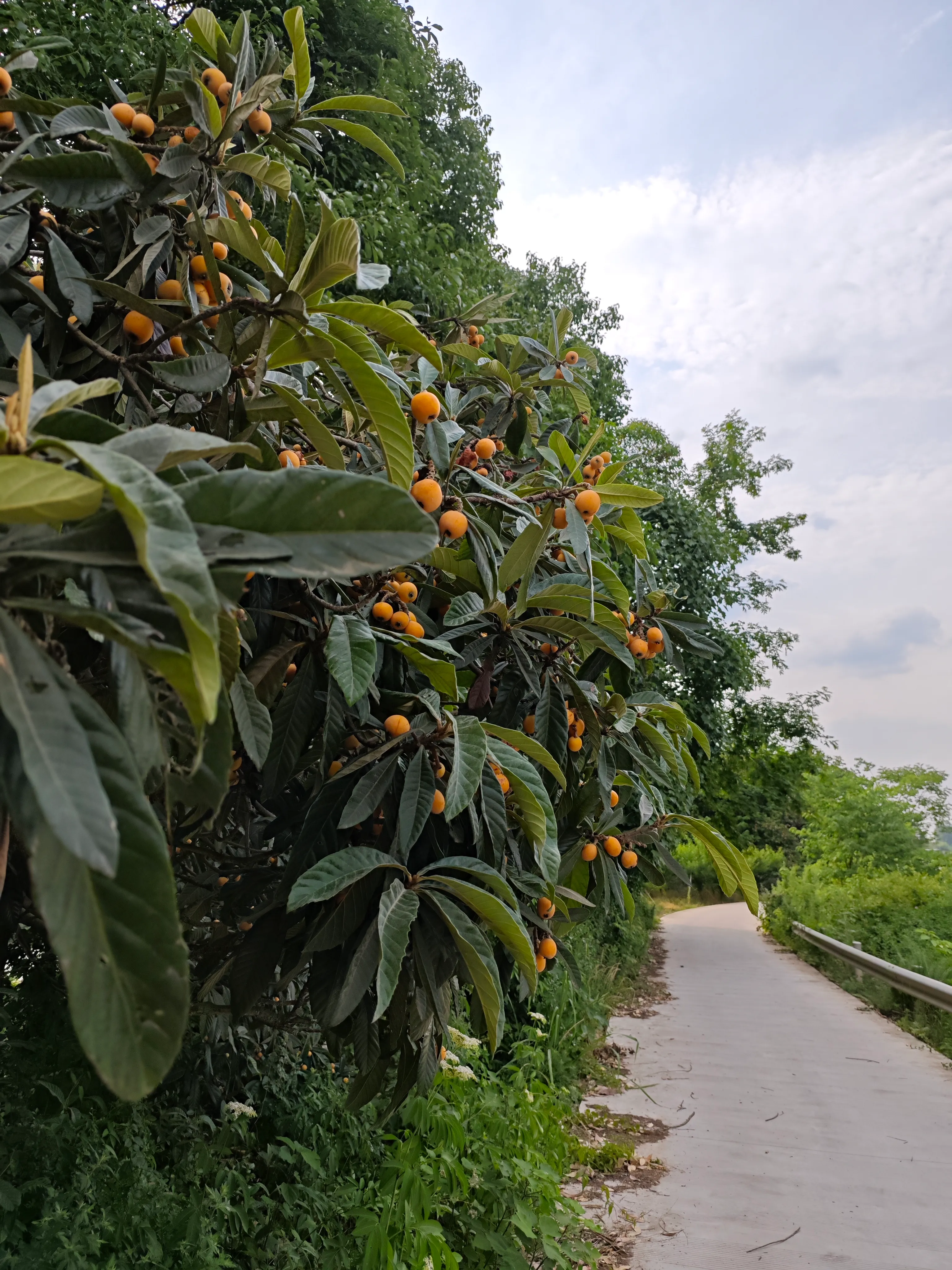 沿着新南干渠骑的话,一路的补给点比较少,需要拐出去。但五月下旬的时候,正是枇杷成熟的筋节,沿河的路上到处都是结满了果实的树,而且伸手可取。这很难不动心对吧。特别是又累又渴的时候。