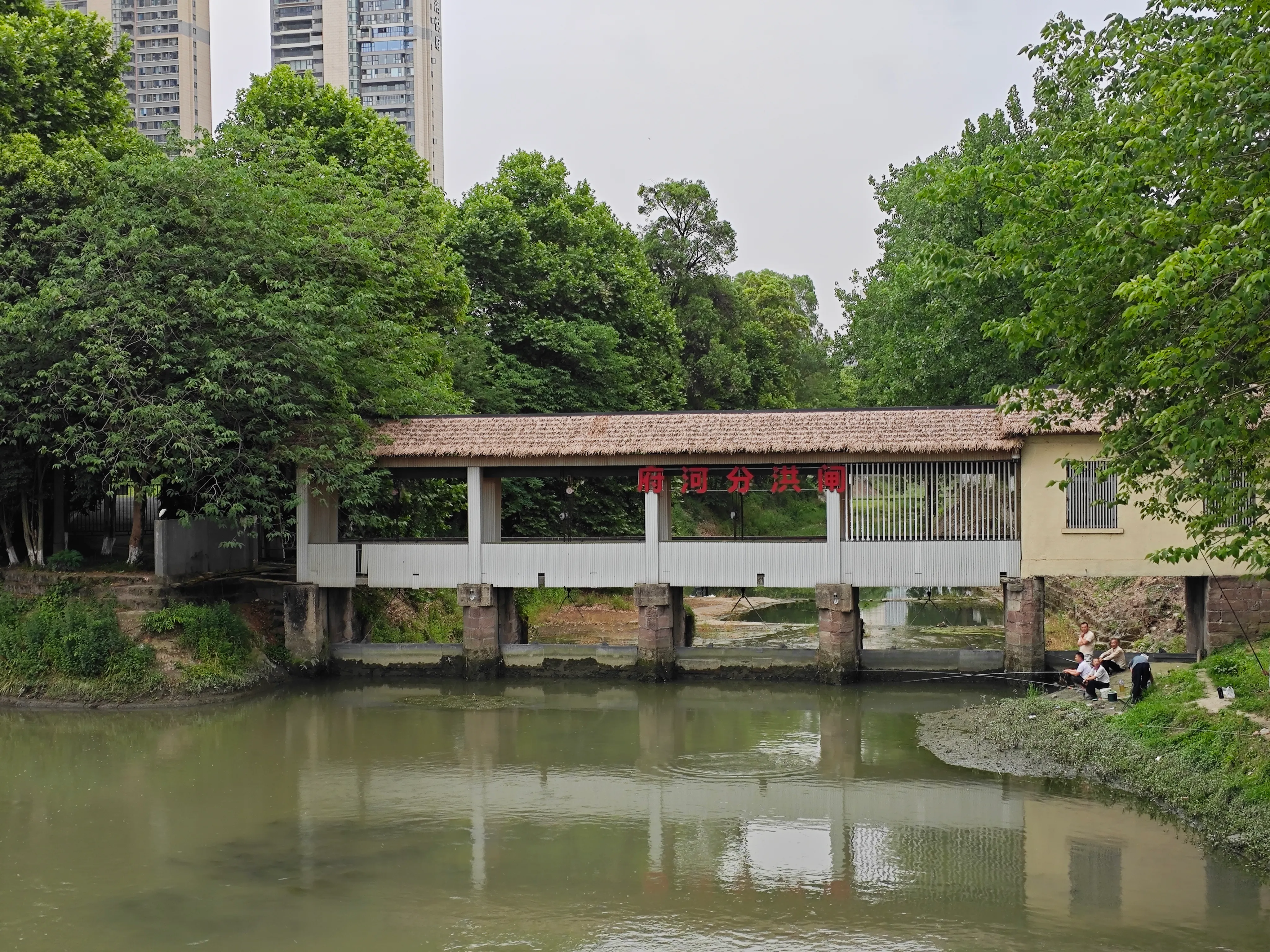 府河分洪闸不远处就是这个叫拦漂闸的设施。估计是早年为了拦下从上游漂过来的木材而设立的。这个设施看起来还比较新,但拦木材这种事,我感觉几十年前应该就停止了吧?至少象紫坪铺修起来之后就没这可能了吧?