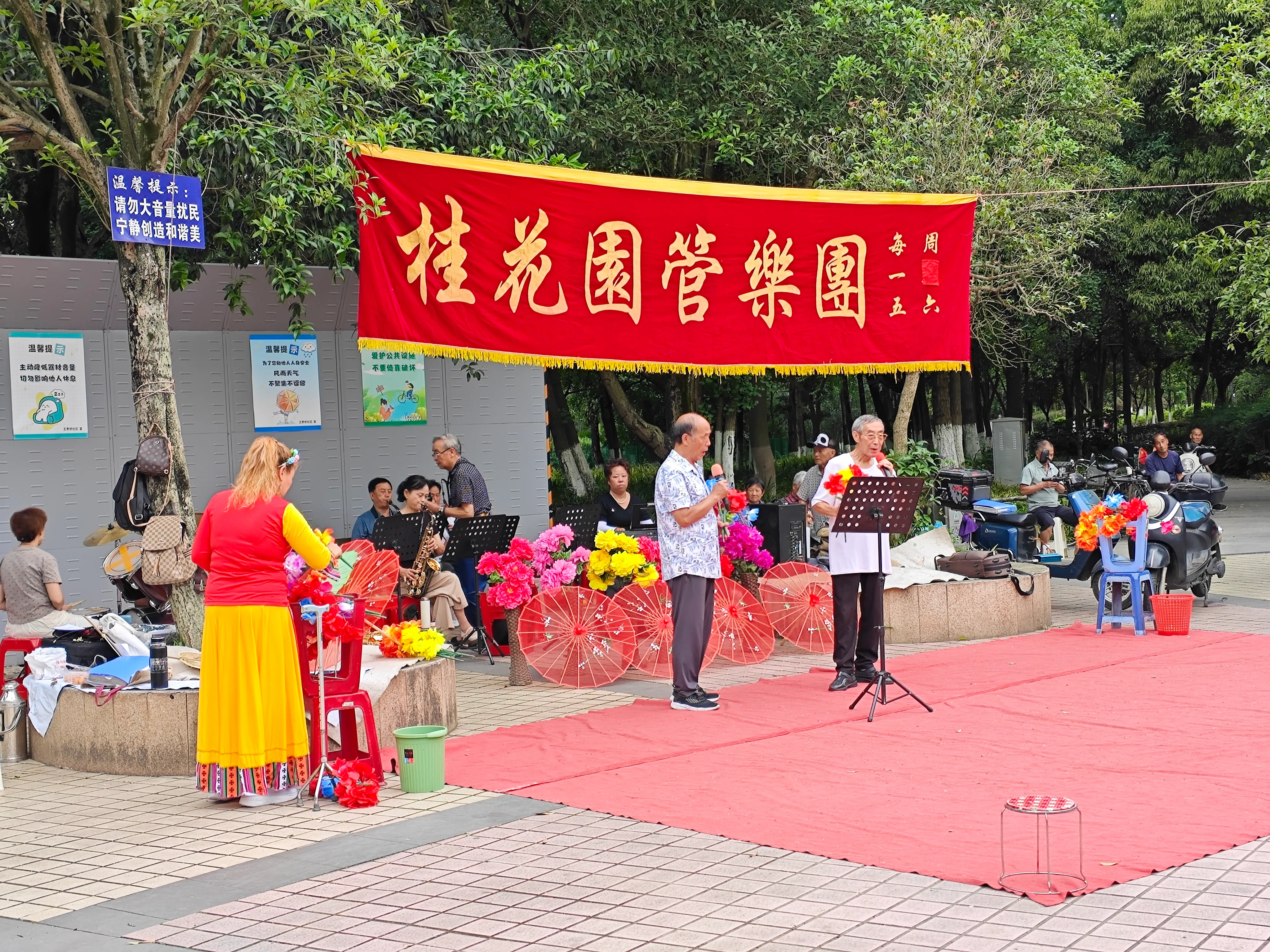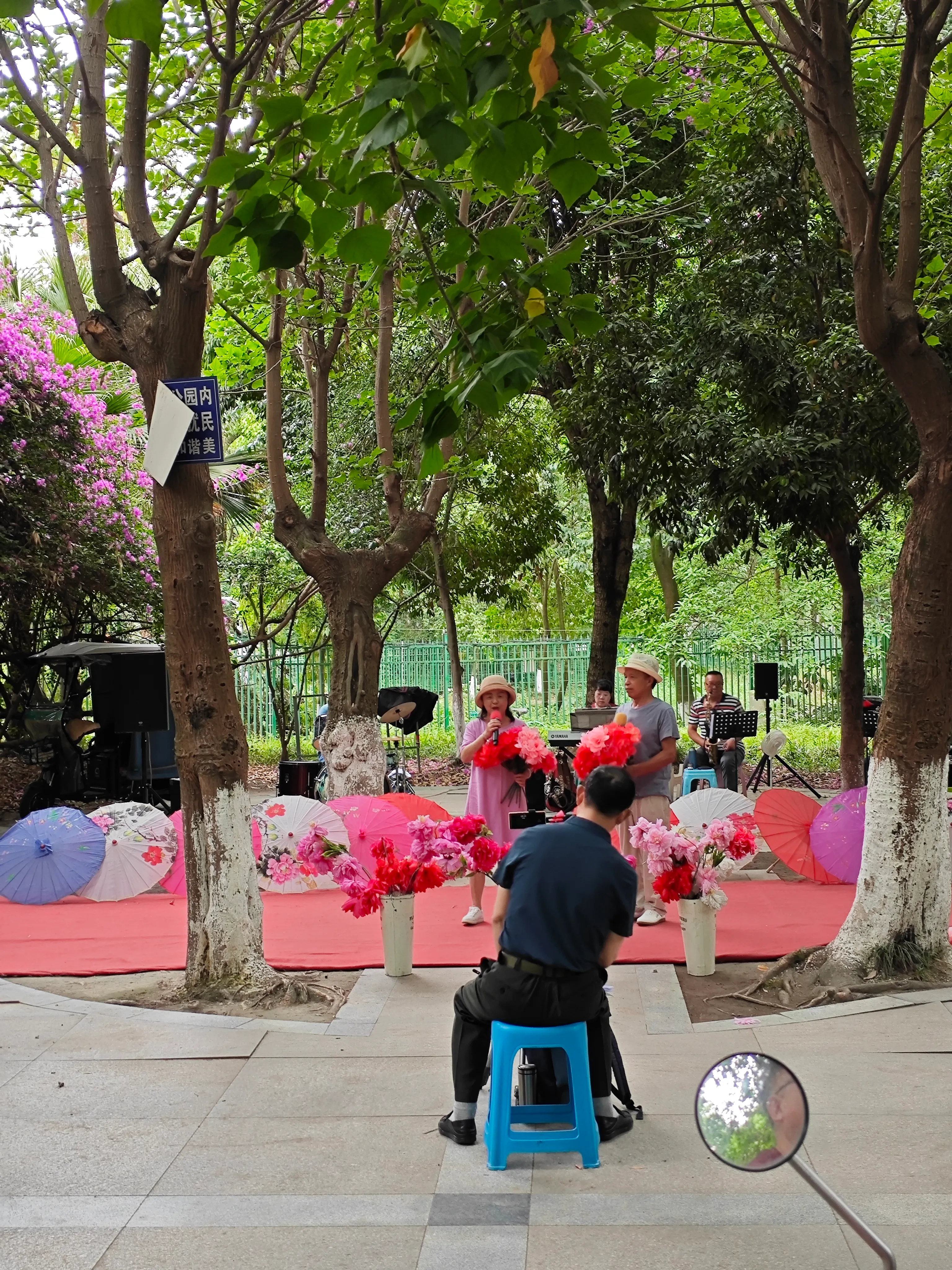 有河有森林,有公园,就肯定少不了老年人的活动。但这里的活动规模和层次确实是超出了我的想象。别的地方可能就一个人玩个乐器,唱歌什么的。这里已经进化到管乐团了。有专门的舞台、乐池,乐队配整齐,节目估计也包括唱歌、独奏、甚至舞蹈。道具也非常齐全,我甚至看到了专门用于献花活动的假花。你要是看他们表演得好,就上去献个花,完全免费,可重复使用。最厉害的是,我看到不止一个这样的规模。这说明这一带离居民区是有一定距离的,要不然早被骂死了。