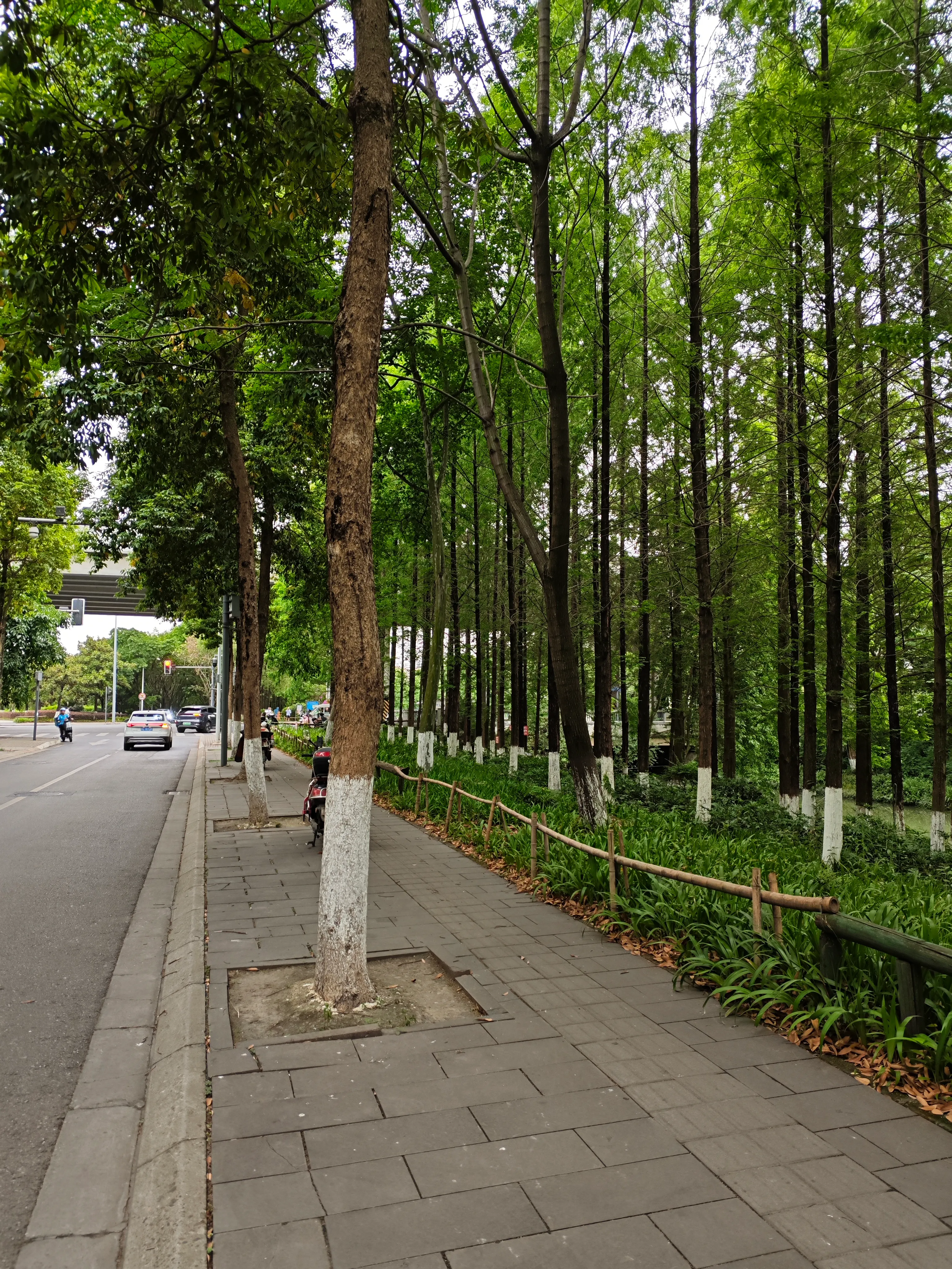 有的地方沿河没有专门的人行道,但就算是市政道路,也是全森林覆盖。