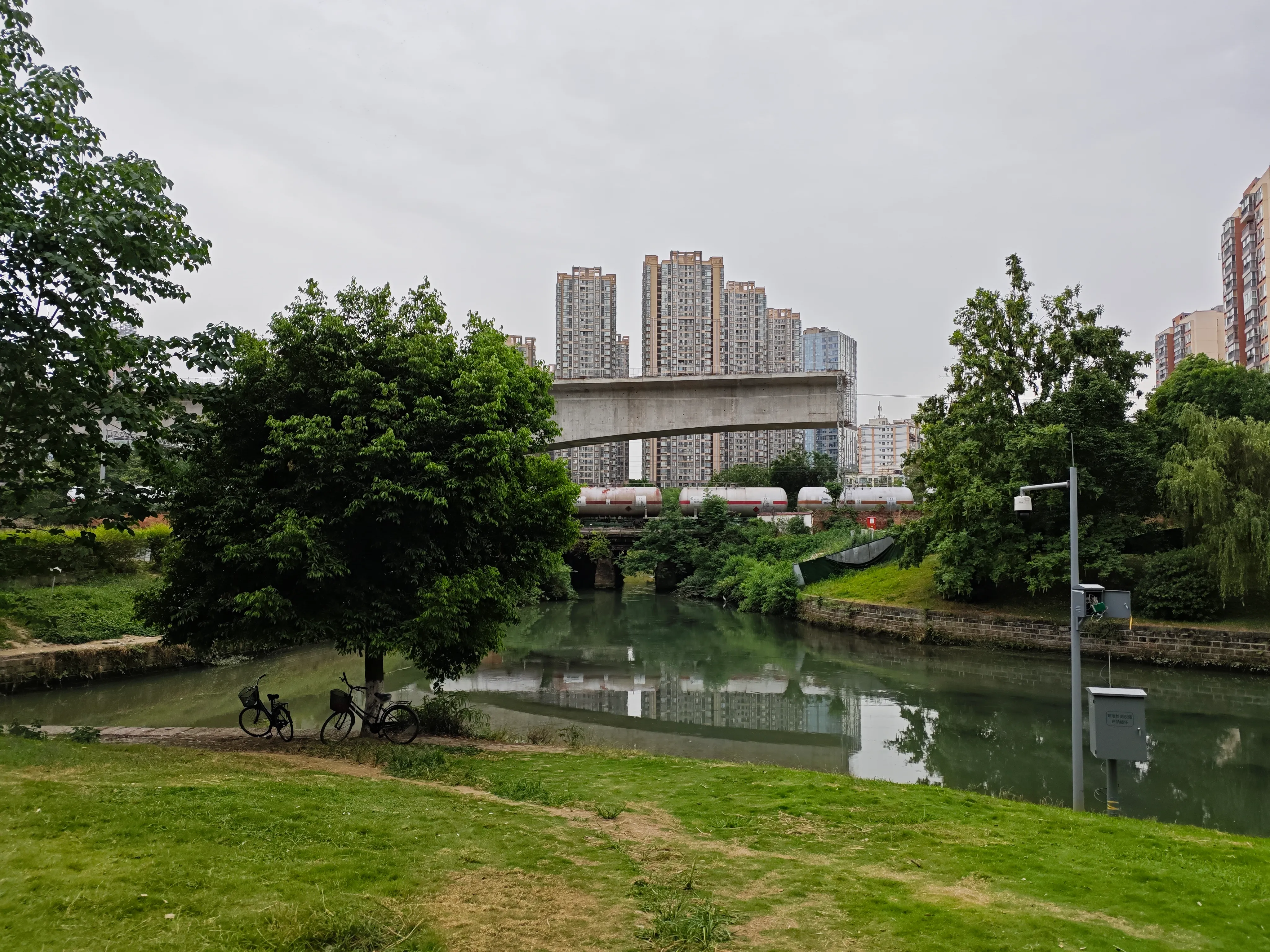 沙河其实离城市是比较近的。前面高楼应该是四马桥,还有火车北站附近的铁路。