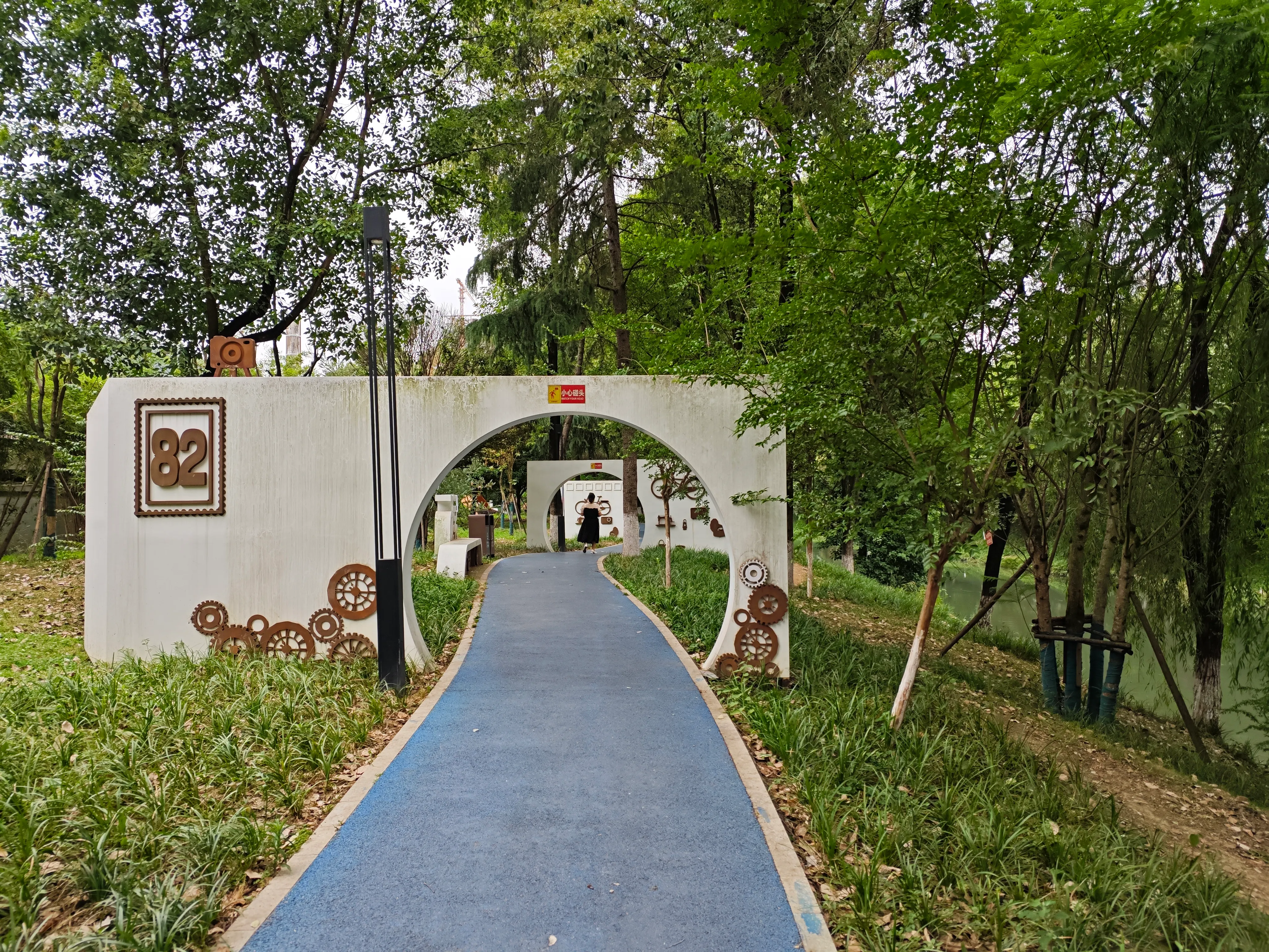 漫步其中,可欣赏到钢架长廊、旱喷广场、音乐喷泉广场等风格各异的风情,分别意味着手工业时代、钢铁纺织时代及电子信息时代。景区中心是保留的原工厂车间改造而成的工业文明展示馆,陈列有反映成都工业发展历程的展品和艺术品。