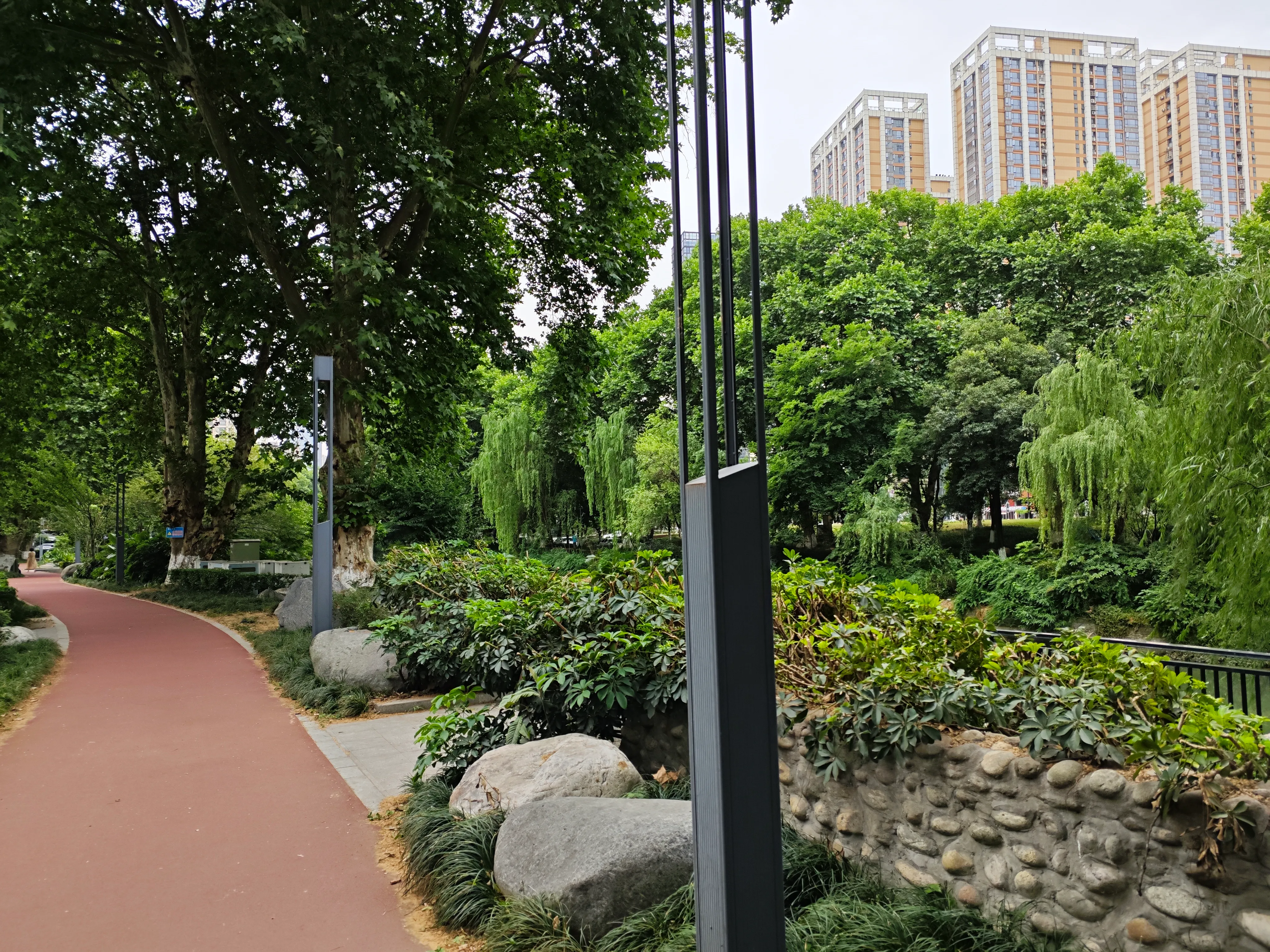 这一带树种换成了粗壮的法国梧桐树了,夏天遮荫之良选。沙河两岸大部分还是原始堤岸,这也是比较难得的。