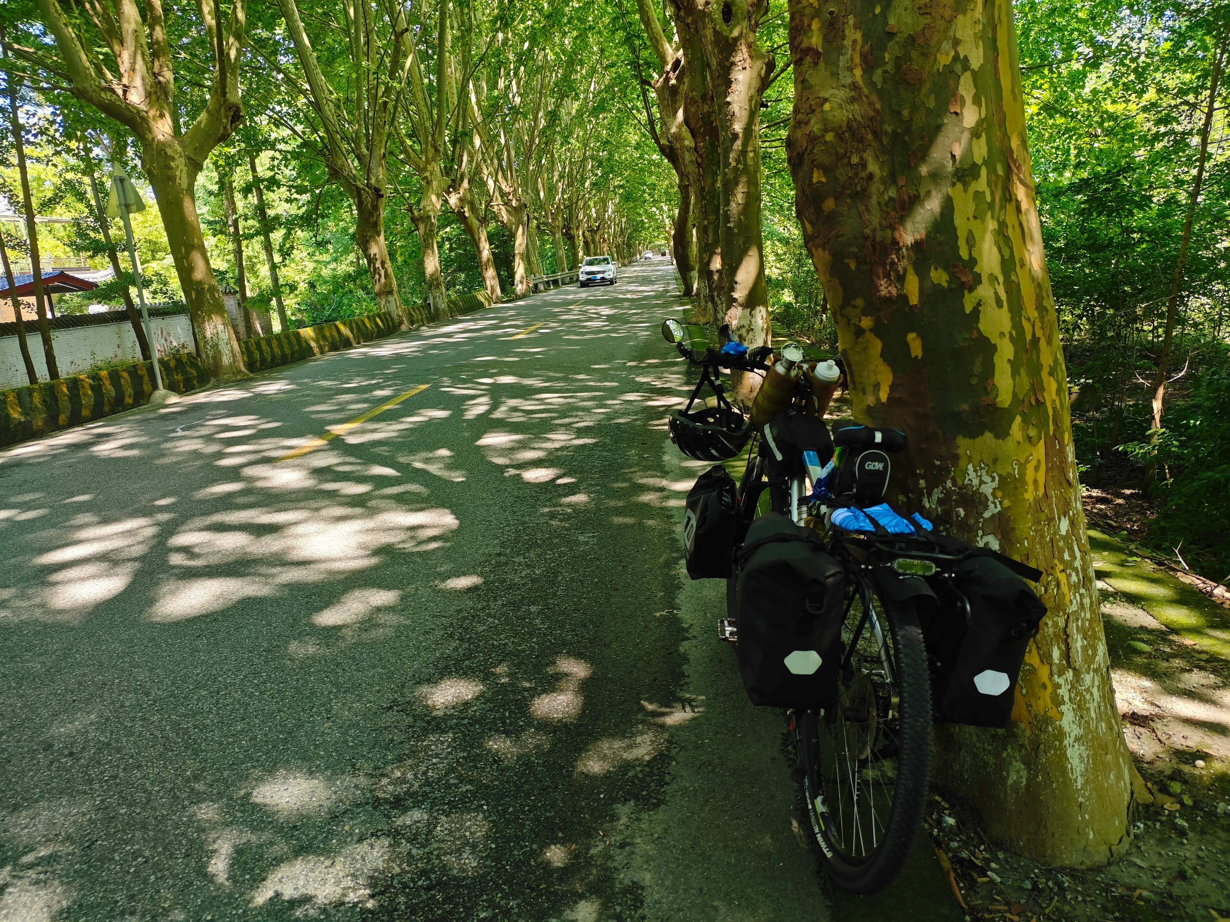 树荫遮了大部分的阳光,骑行在这样的路上并不显得可怕。