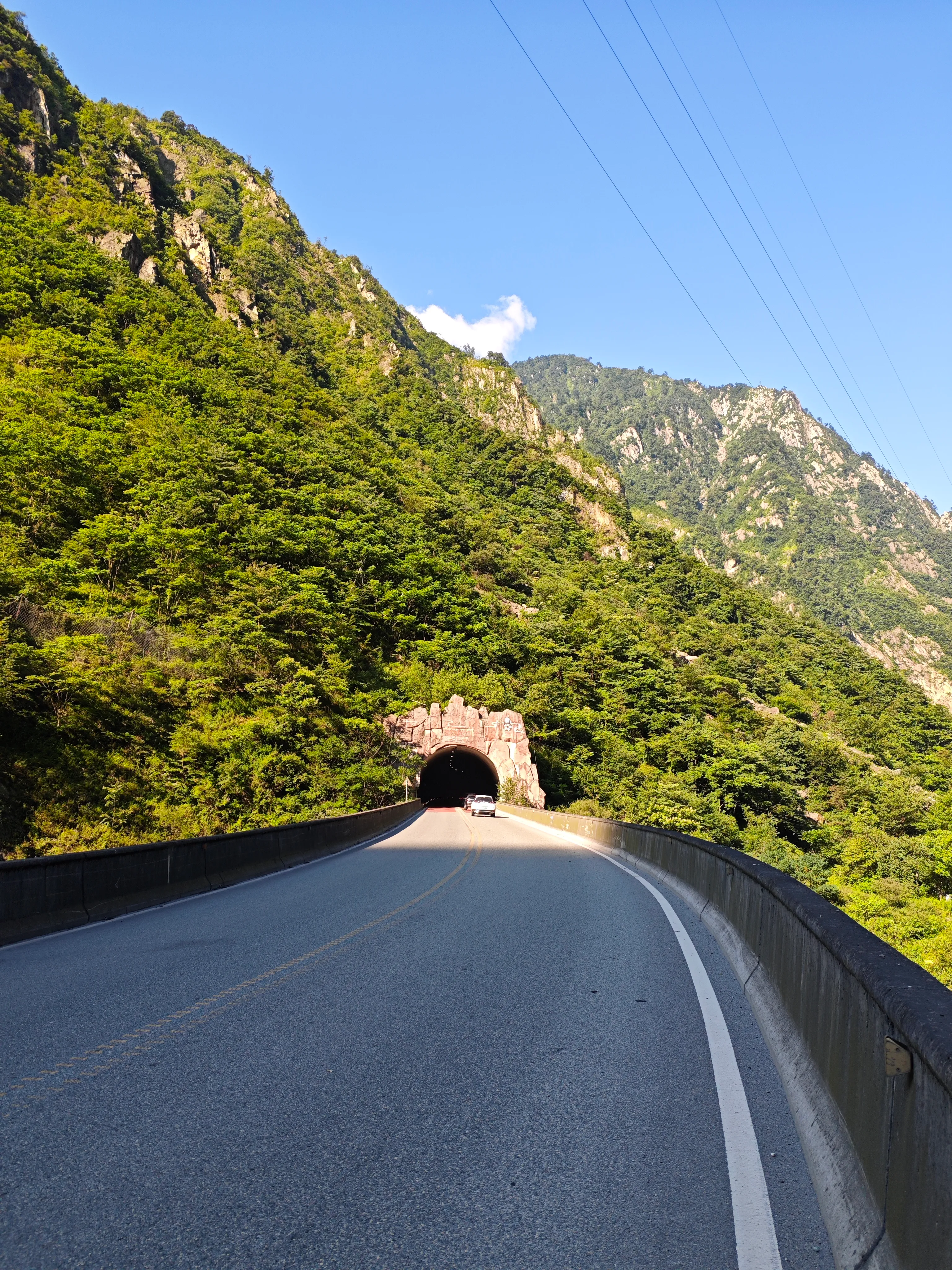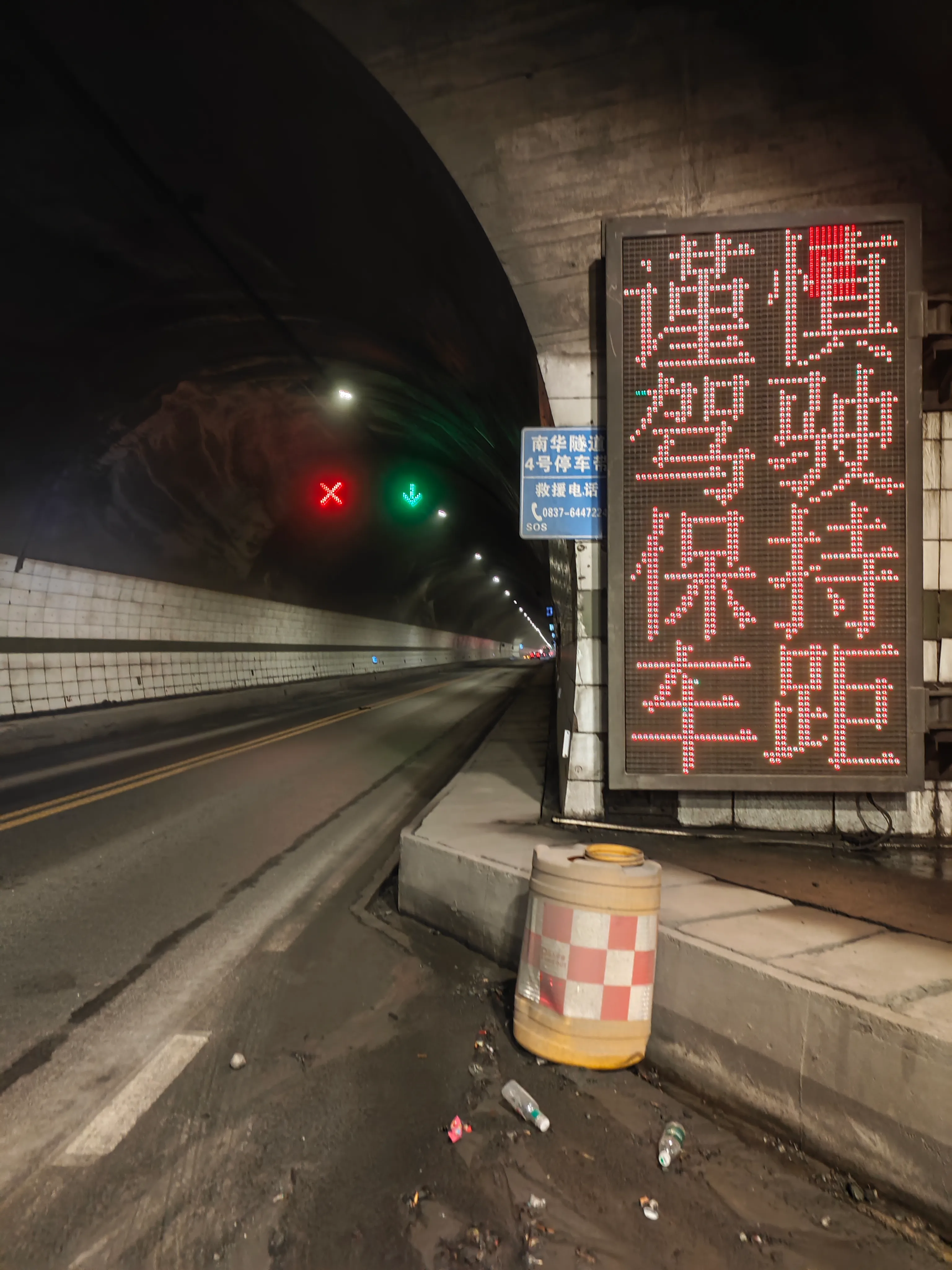 好景不长,没有骑多久,就开始碰上隧道了。昨天在小红书留言的骑友说,映秀到耿达的隧道也很多,而且大车也不少,只是比到映秀的情况稍好。今天就开始体验到了。第一个隧道就是5公里。