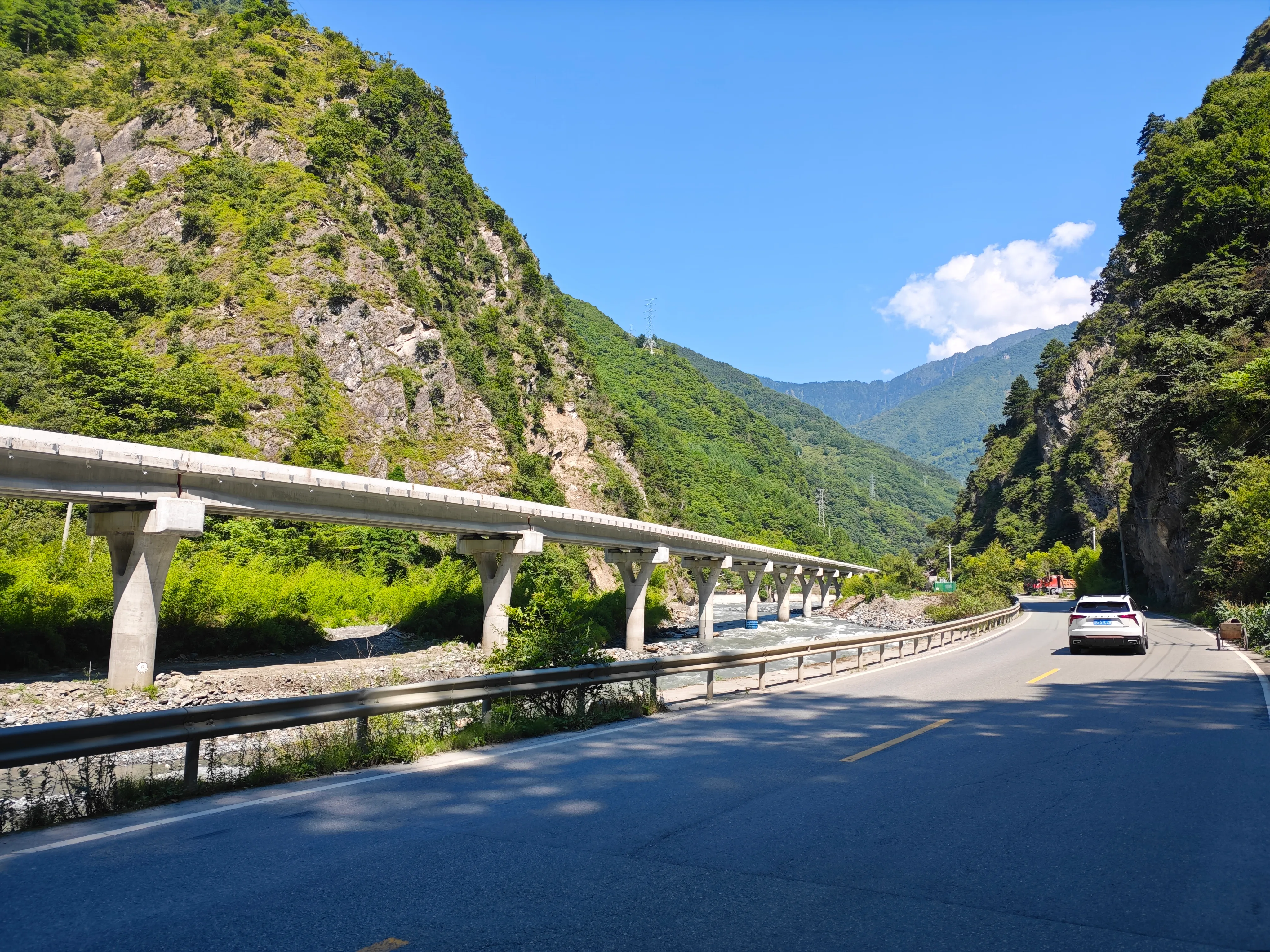 从映秀吃了早饭出来,太阳已经老高了,赶紧向耿达方向骑行。