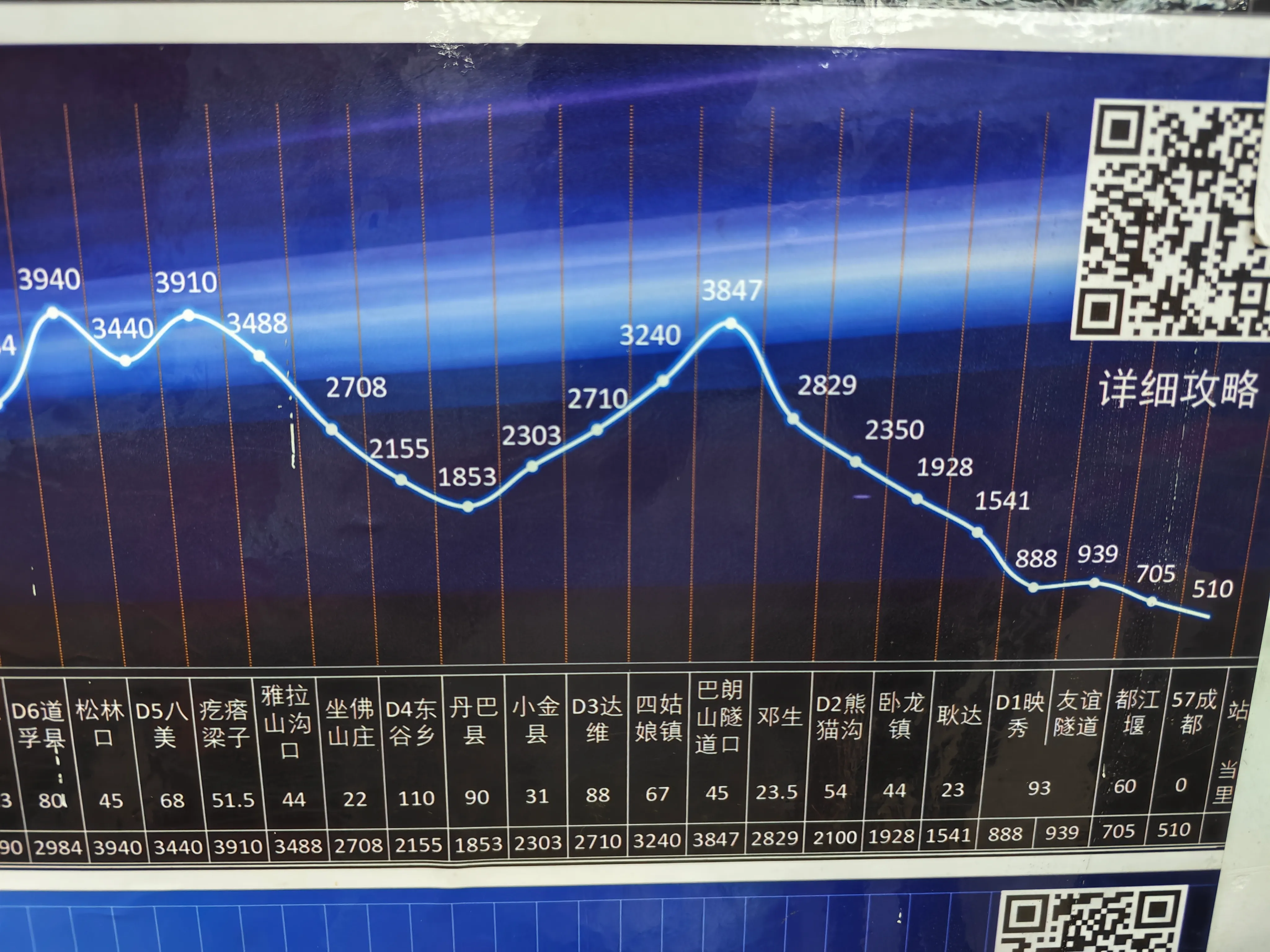 在客栈里拍了这张海拔图。可以看到明天到巴朗山隧道口45公里,需要爬升1700米。其实熊猫沟只有1900多米,明天估计至少要上升1900米。这真是个巨大挑战。关键是这个挑战之后,还有8公里长的巴朗山隧道。