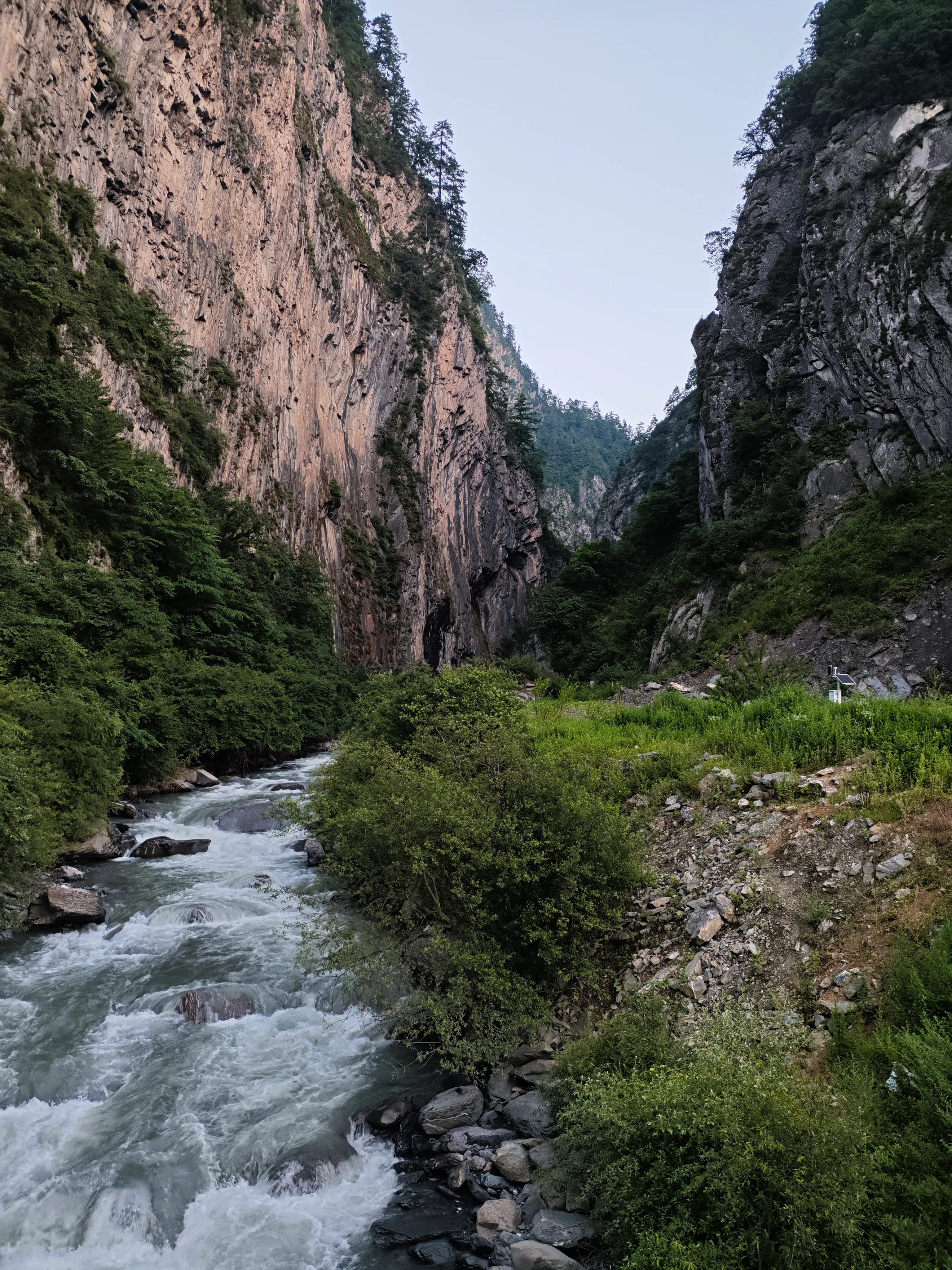 Section titled “D3:熊猫沟至四姑娘山镇”今天是艰难一天,早上早起确保能在日出时就立刻出发。早上吃了泡面,收拾后,差不多6点半出发。