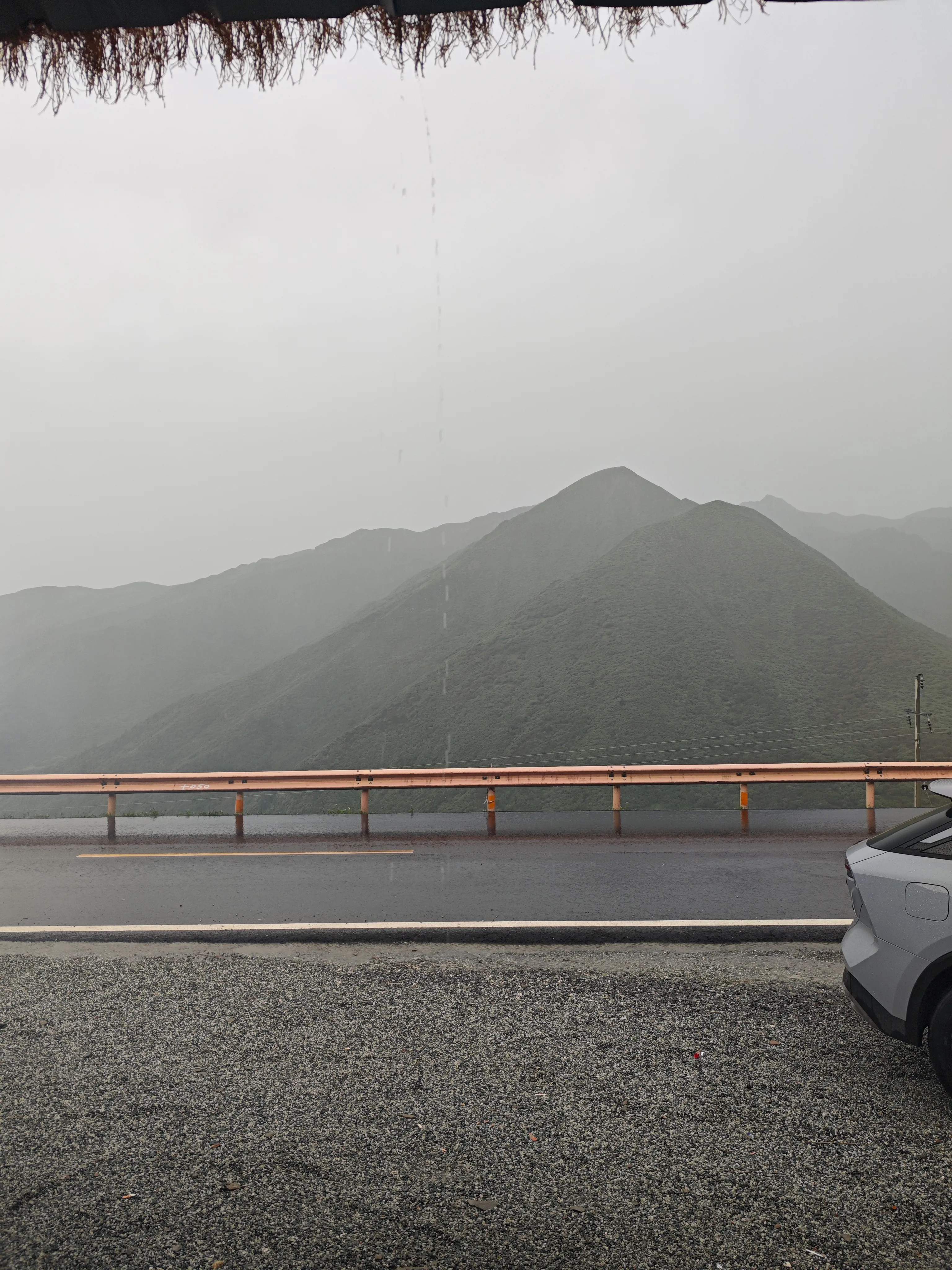 在经过十多次,或者数十次拦车求救后,终于找到两位男士愿意停下来,问清情况后把我带到了巴朗山的观景台躲雨。