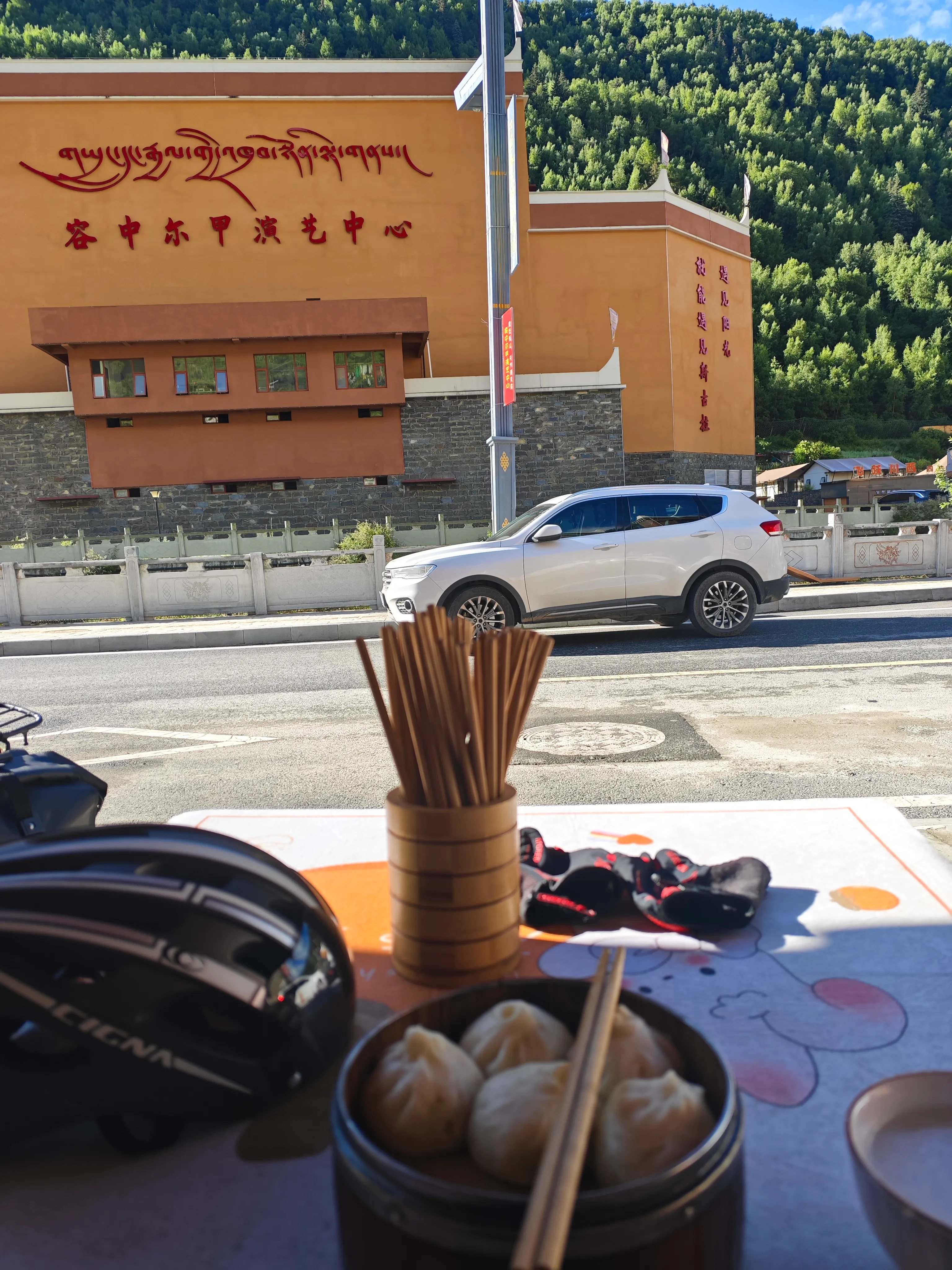 早饭是一笼包子加上稀饭,好象16元。吃完以后快9点了。太阳光很猛,但气温比较低,开始骑行时还得穿件外套。