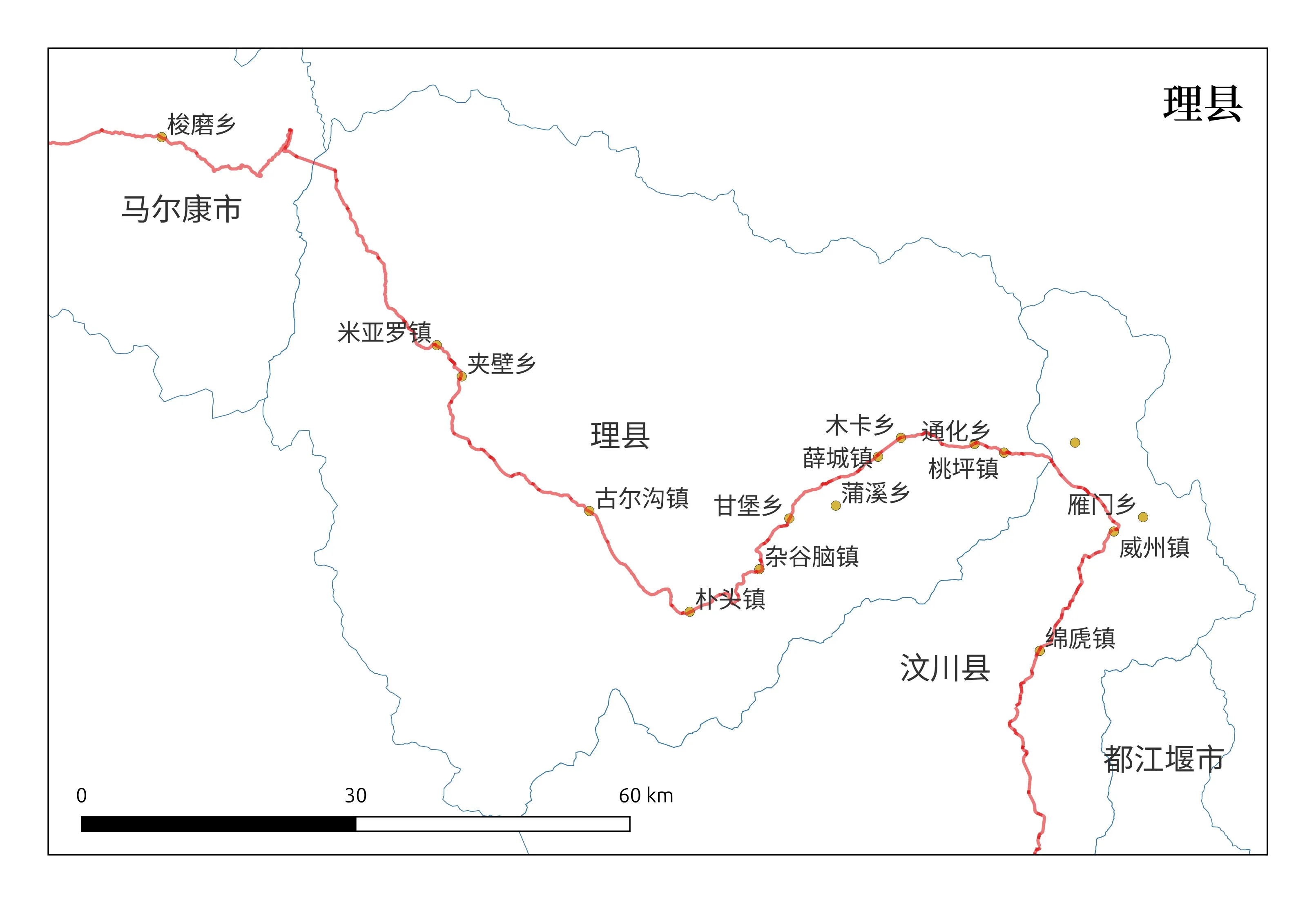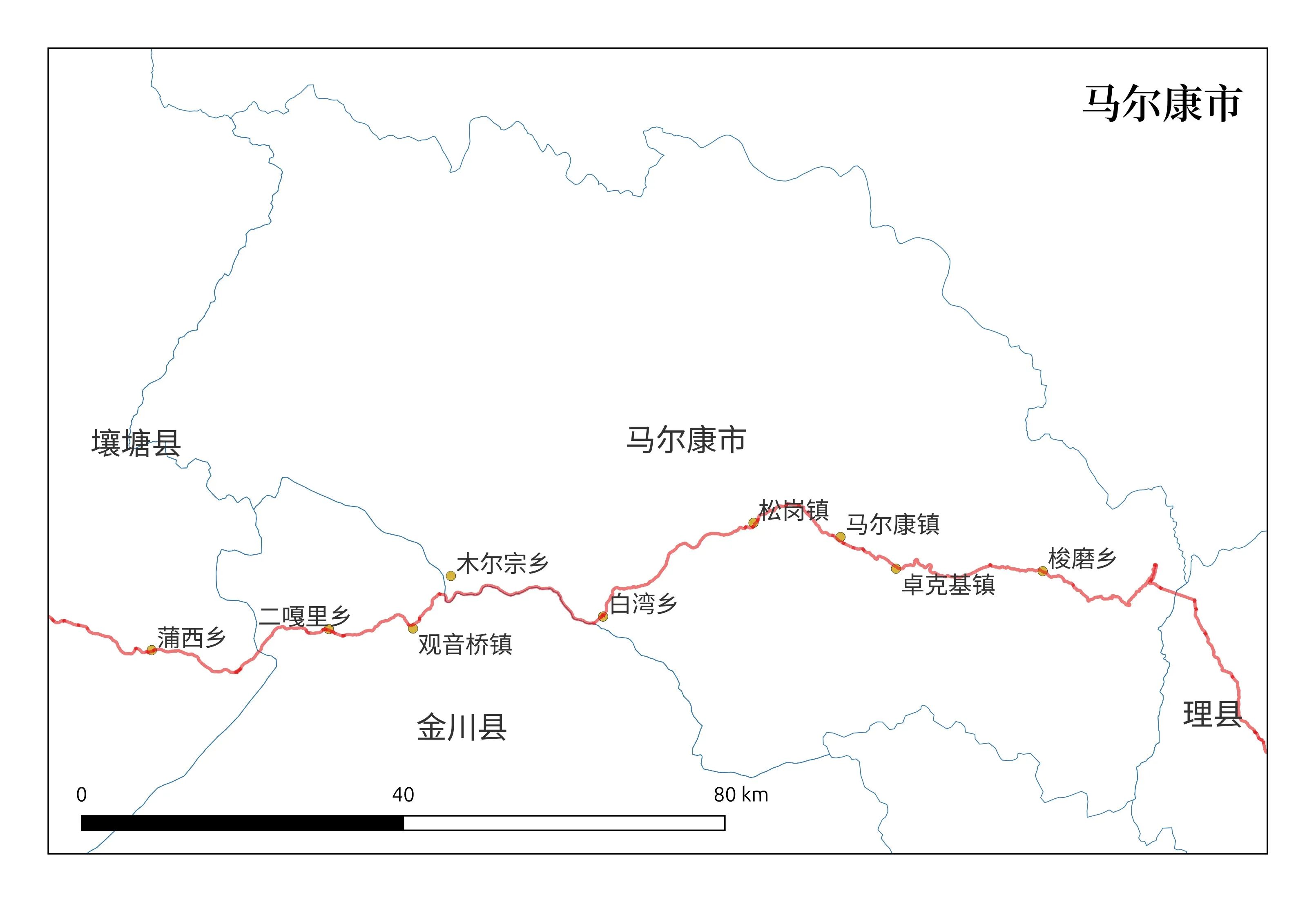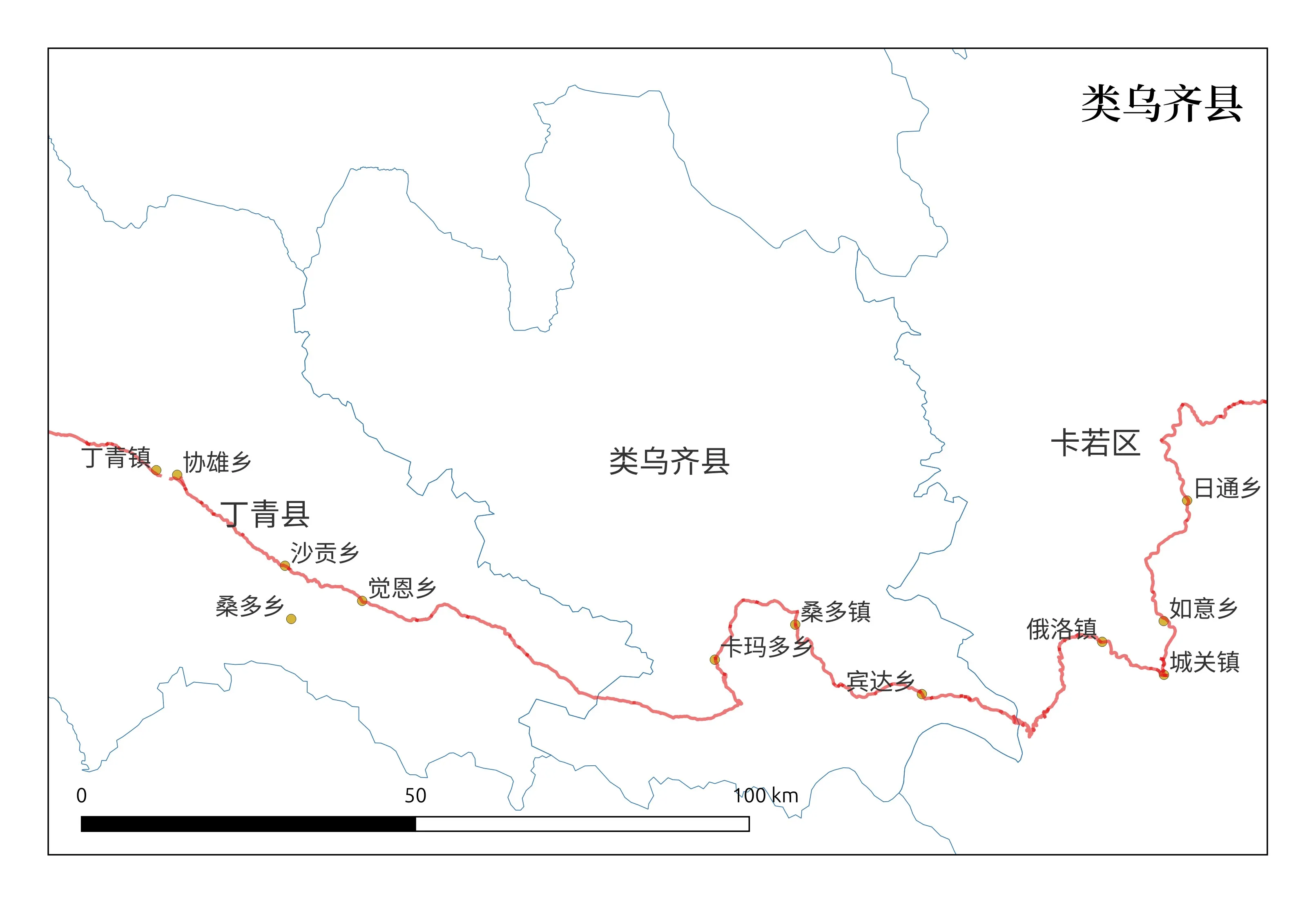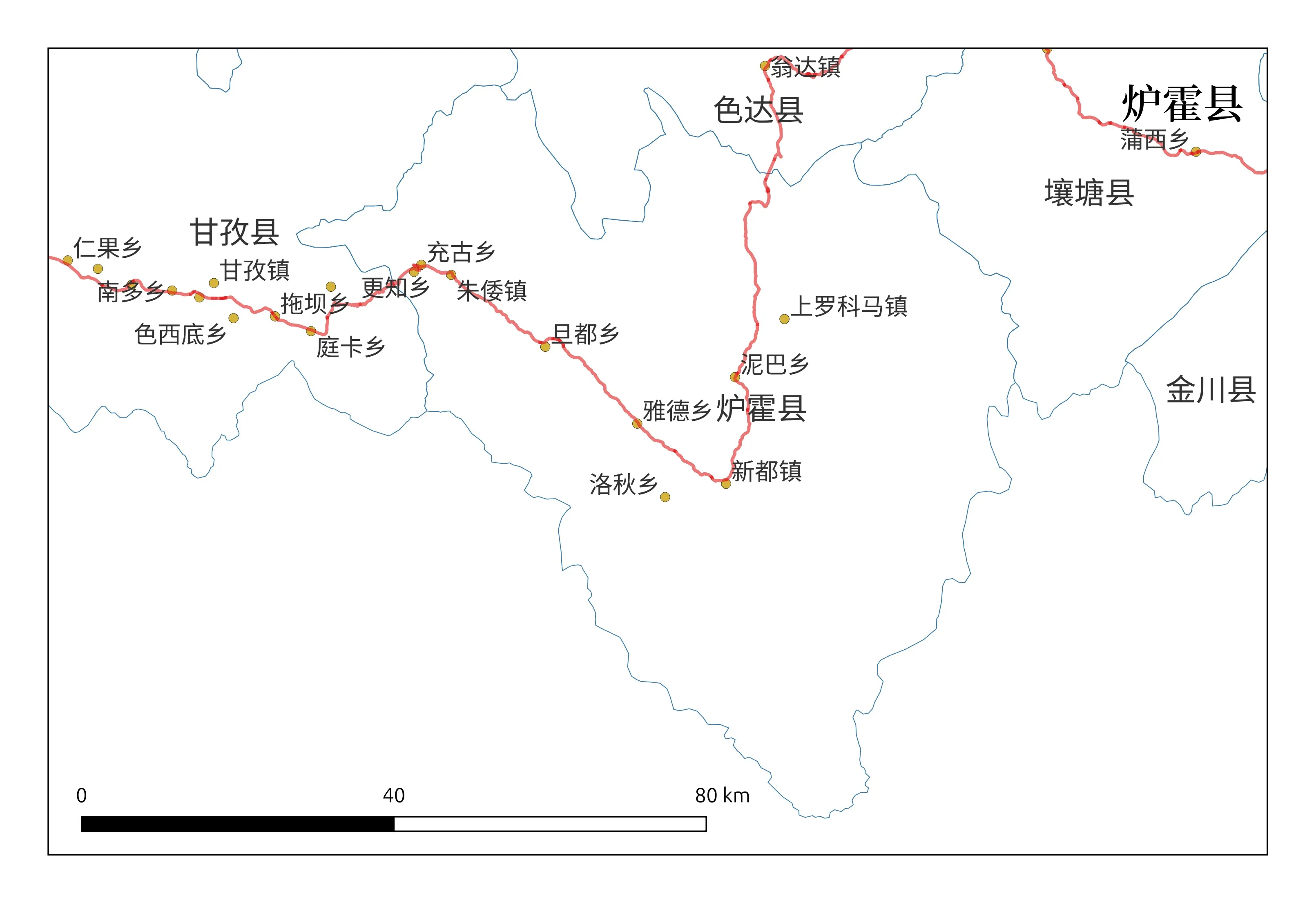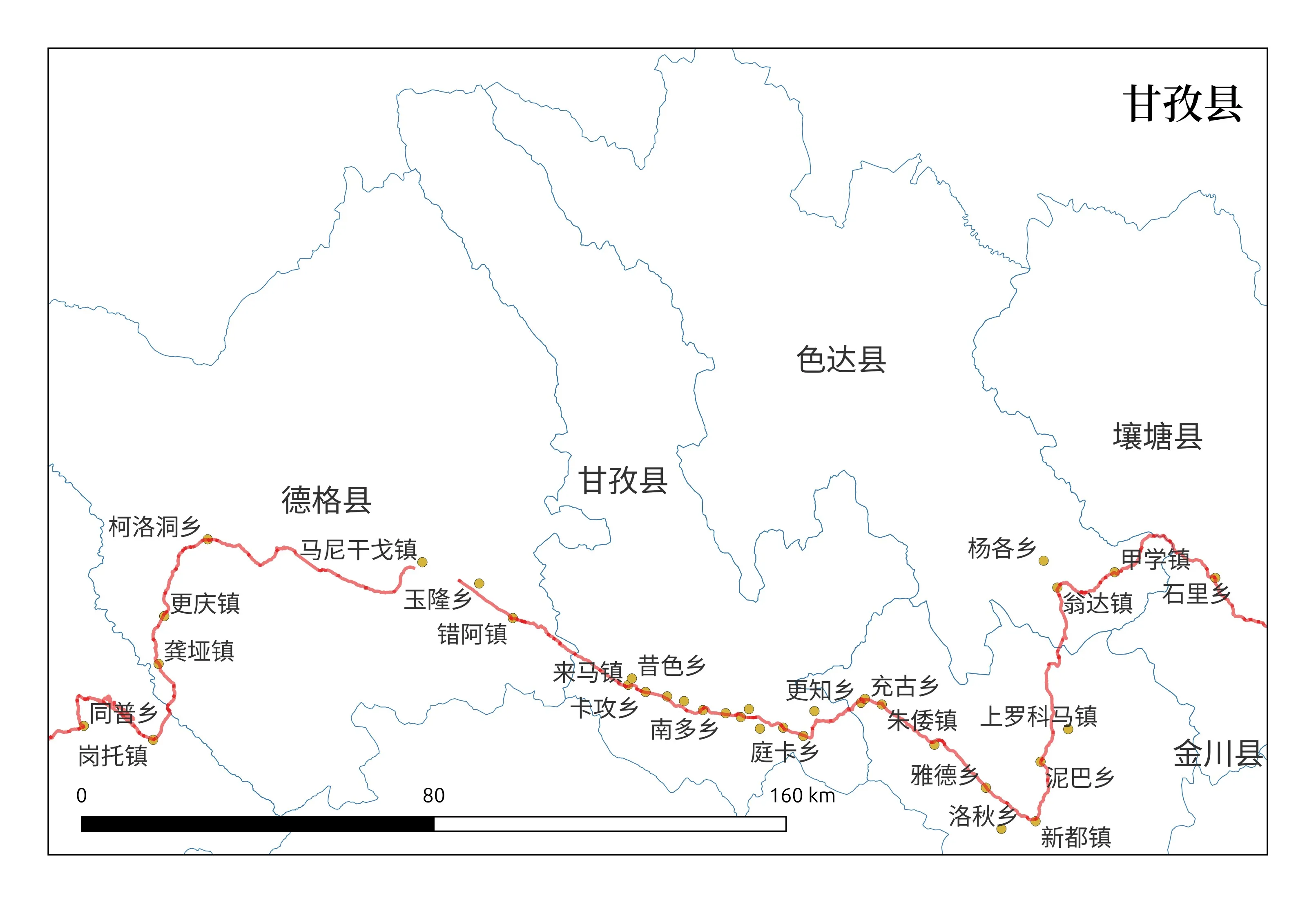 以下是按用qgis选择了路线10公里内的乡镇名称。在地图上,乡镇名称一般会标在乡镇的中心,一般也是最繁华的区域,但也不绝对。可以做为重要的参考。